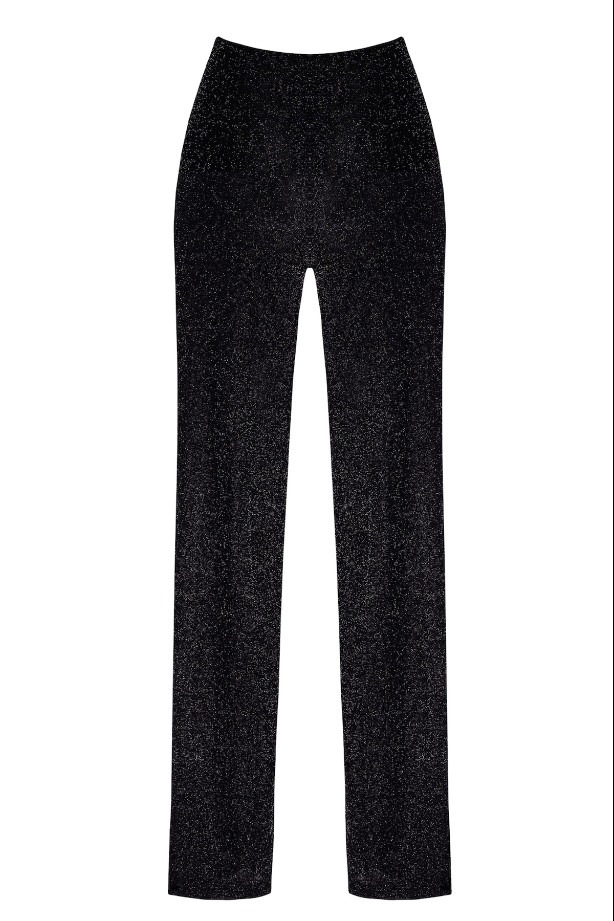 Weite Hose, aus dehnbarem Netzmaterial, welches mit einen silber schimmernden Faden durchzogen wurden ist.