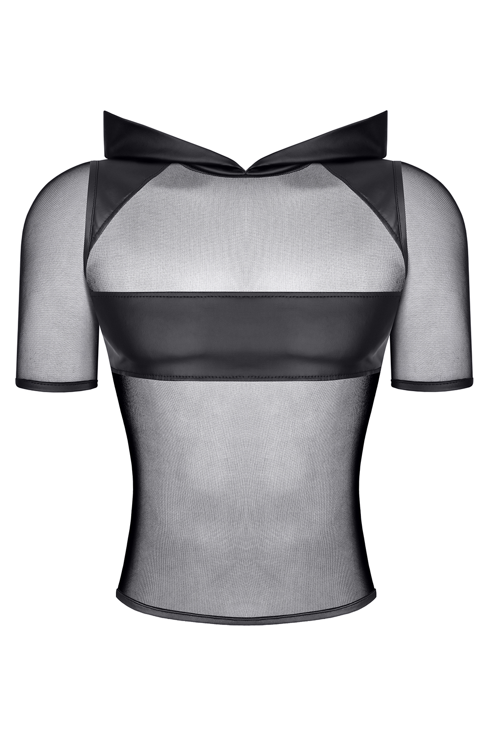 Questa t-shirt è realizzata in morbida ed elasticizzata rete nera. Gli inserti effetto bagnato su spalle e petto creano un contrasto sorprendente e aggiungono un tocco unico al top. Il materiale trasparente permette di mettere in mostra la silhouette, tatuaggi o piercing. L'ampio cappuccio effetto bagnato aggiunge un tocco più audace. Si abbina perfettamente agli shorts RMPaolo001.
